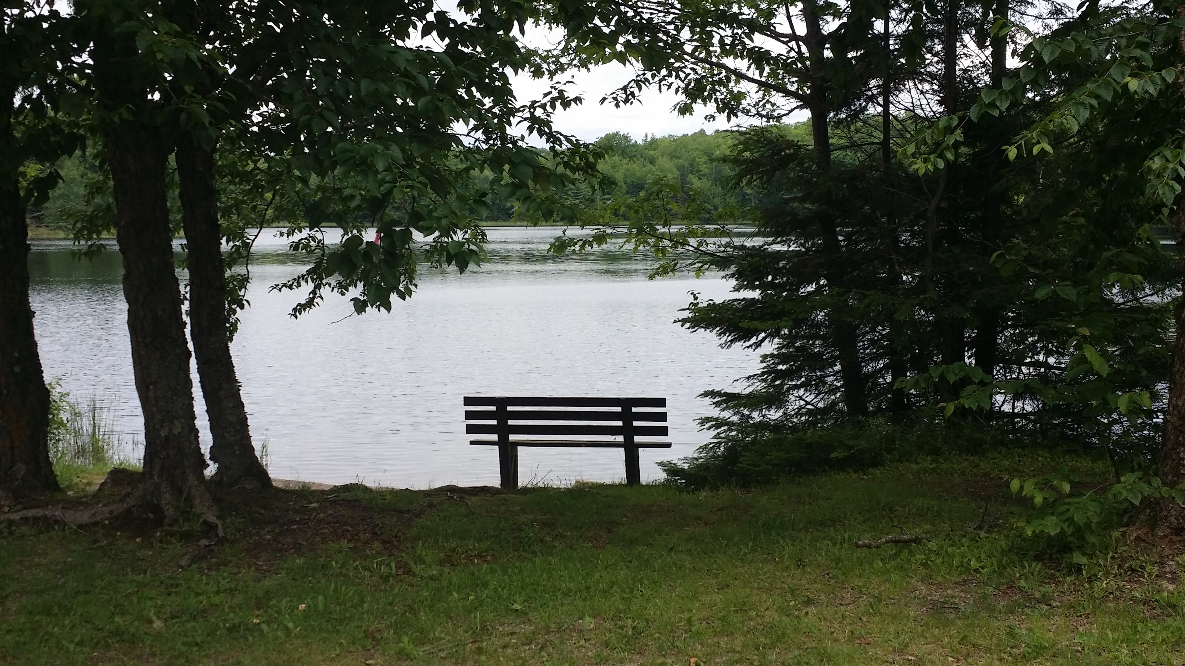 After our failure to paddle from Canada back to the US, the next day we arranged for a ride around Georgian Bay to about where we would have been E-W, though quite a bit north. Instead of a 1.5 mile paddle, it was a 200 mile drive. Crossing the border at Sault Ste Marie, Frank headed for the airport, and I rode toward Trout Lake. Frank was renting a car at the airport, driving far back to “Soo” to get a box for his bike, then meeting me at Trout Lake. Rain was predicted and looked pretty certain from the radar. I raced to arrive ahead of the rain, which never was more than a sprinkle. But I did travel fast, maybe too fast, going 54 mi at a 14.5 mph pace. My left knee started to hurt. The next day, Frank packed up his bike while I headed off toward Manistique, MI. Thirty miles into the ride, my knee was extremely painful and almost impossible to walk on. Uh oh. I limped the remaining 40 miles. The road was Route 2, which is very busy, but at least with a wide margin.