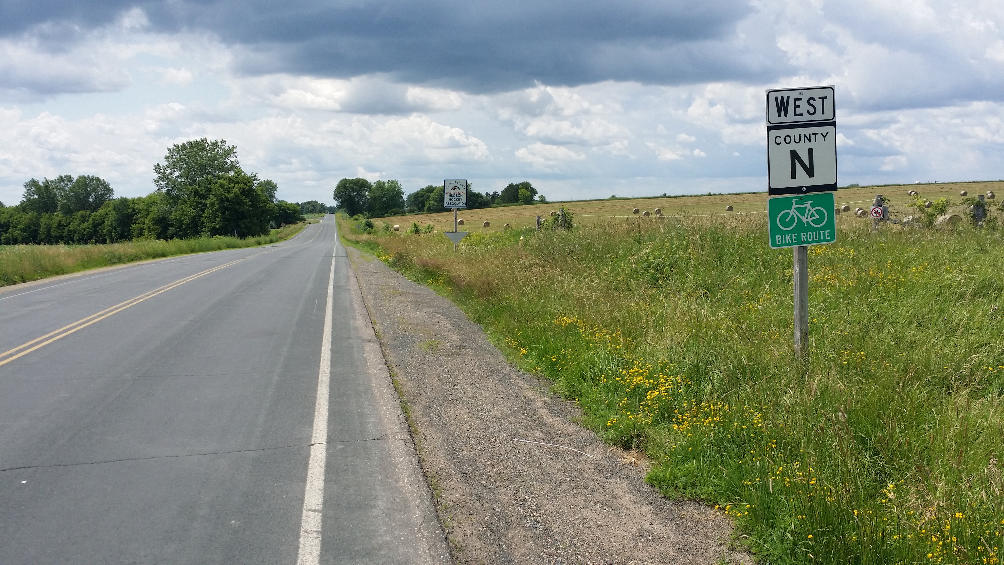Wisconsin has been really great. This image captures it. Nice road, well-marked, pretty scenery. I highly recommend Wisconsin for cycling.