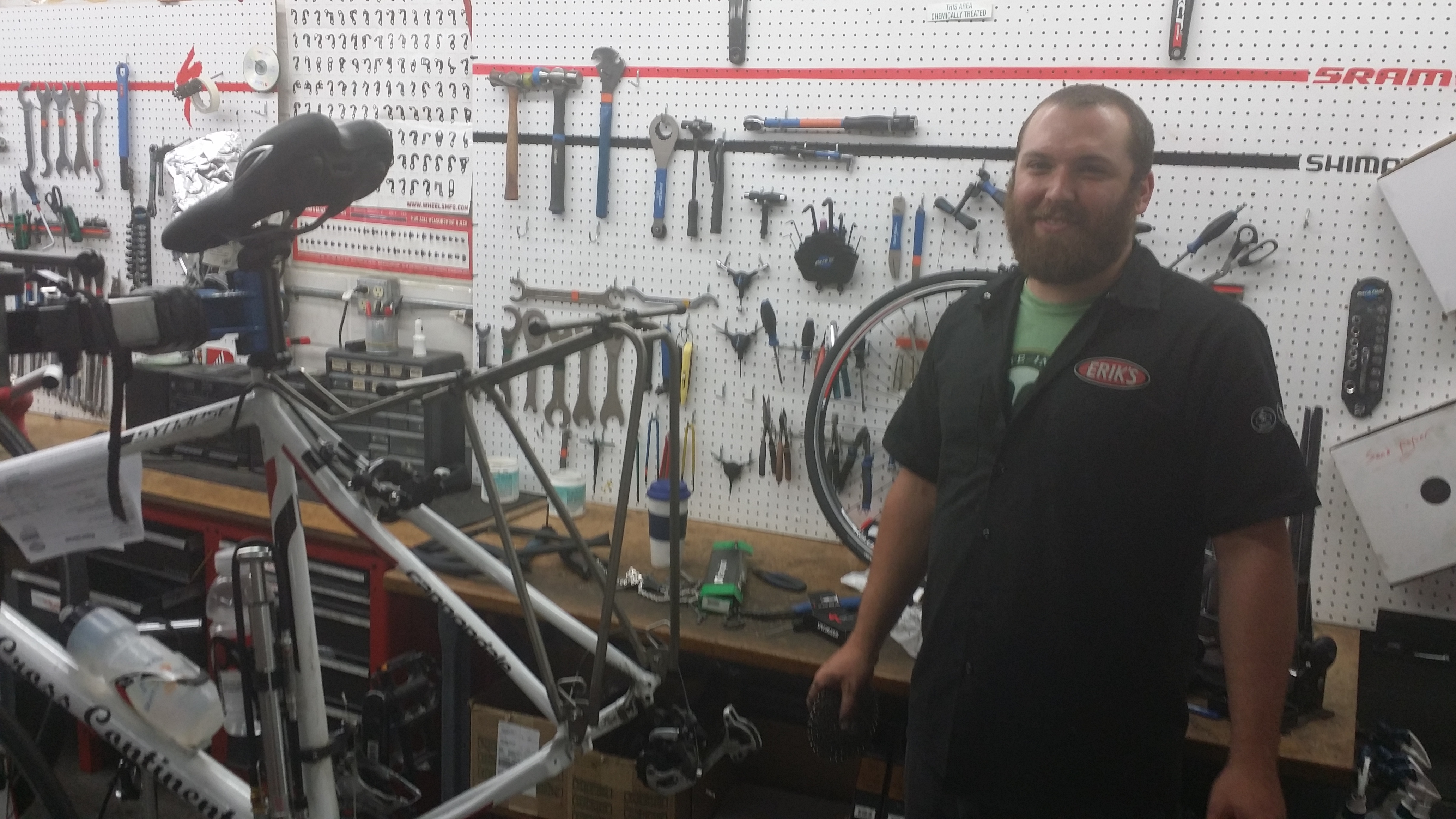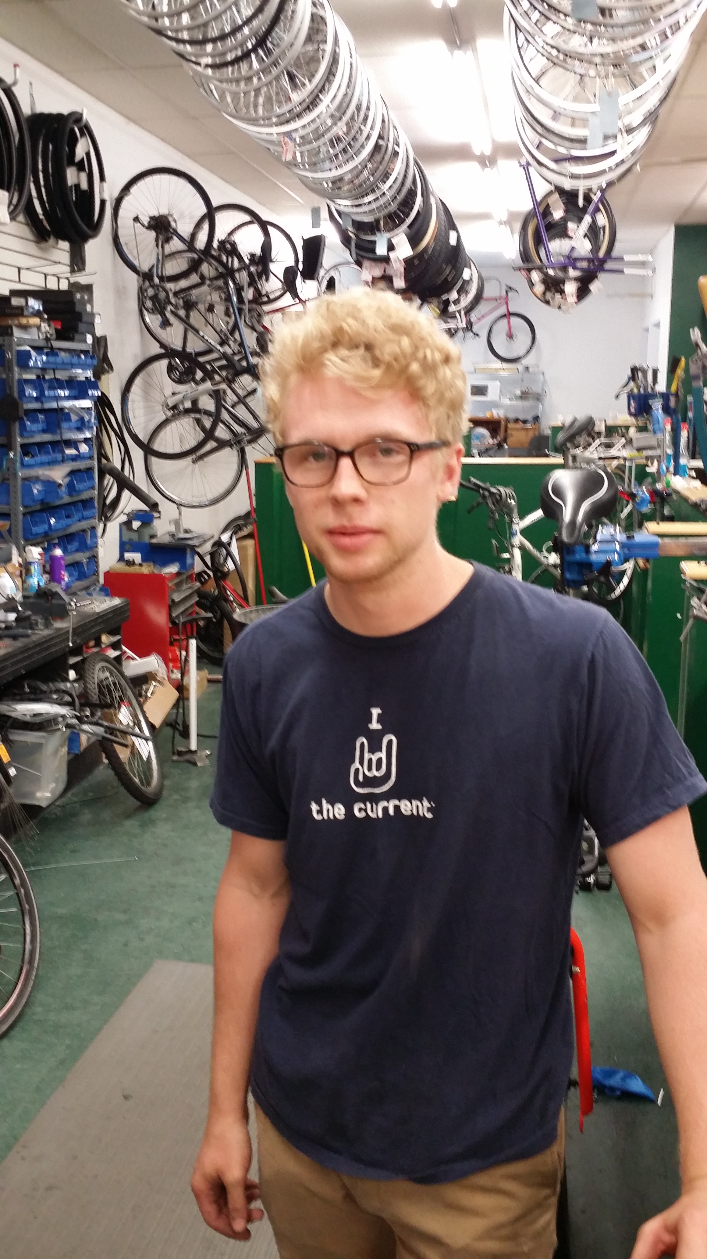 The Better World Club (AAA for bikes) picked me up in a reasonable amount of time (though at first saying it would be 2 to 3 hours, this in the Minneapolis metro area!). I got a ride to Erik’s Bike Shop, where technician Ryan replaced the spoke, trued the wheel, and cleaned and lubricated the drive train (chain and derailleurs). CC looks beautiful again, and more importantly, was free from all the damaging crud that we had picked up on unintended dirt and gravel roads in the first 1500 miles. She shifts so much sweeter now, important when you change gears thousands of times a day.  (You know me well enough to know this is not a figure of speech.)            Thanks Ryan!