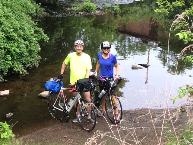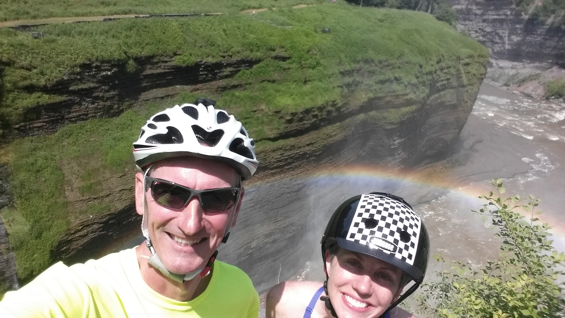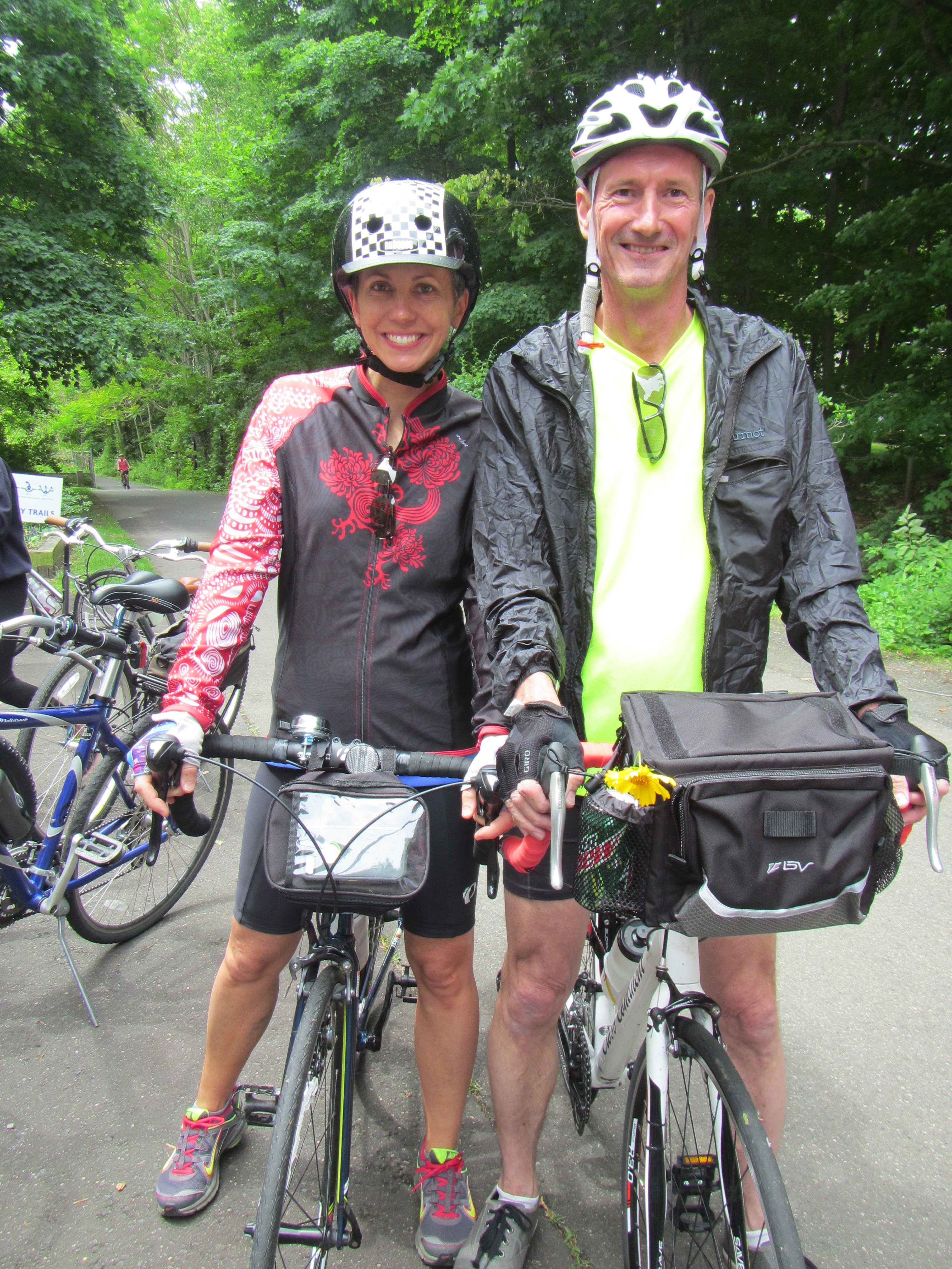 I picked him up at the Bufflalo airport, getting a flat tire just as I arrived. (I ran over a piece of metal that got imbedded in the tire.) We spent the next hour assembling his bike from the box he carried it in. Turned out to be perfect timing, as I could repair my flat, and we could wait out a torrential rain that arrived just then.